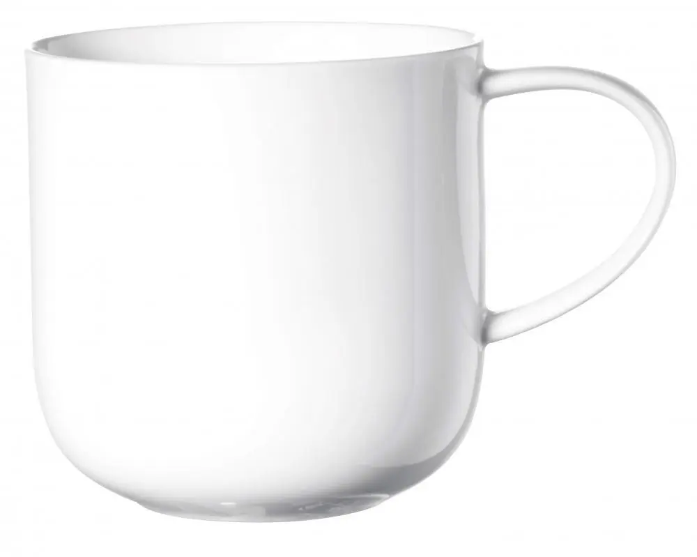ASA Henkelbecher Coppa in weiß. Elegante Tasse aus Porzellan. Ideal für Heißgetränke wie Kaffee, Tee und heiße Schokolade. Mit 400 ml Fassungsvermögen.