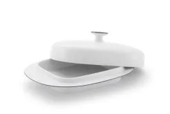 Butterdose JEVERLAND Kleine Brise für 250 Gramm Butter. Zeitlose Butterdose aus hochwertigem Porzellan in weiß mit blauem Zierstreifen.