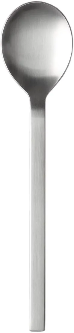 Der schlicht und dennoch edle Löffel der Mono A Serie ist aus matt gebürstetem Edelstahl 18/10, misst 21,3 cm und ist spülmaschinengeignet.