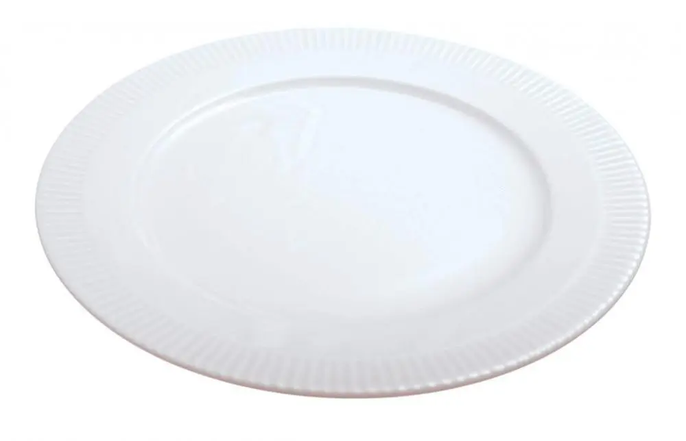 Pillivuyt Teller flach Eclectique Bordeaux in weiß. Die Serie Eclectique wurde im 19. Jahrhundert entwickelt und präsentiert sich in weiß und eleganten Grautönen, die in Kombination miteinander besonders gut zur Geltung kommen.