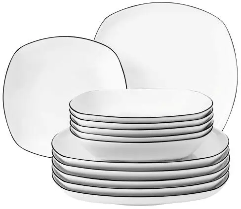 Seltmann Weiden Lido Black Line Tafelservice 12-teilig eckig. Zeitloses Service für 6 Personen für den alltäglichen und besonderen Gebrauch.