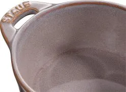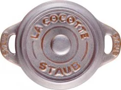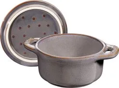 Staub Mini Cocotte in antikgrau. Diese hübsche Cocotte aus Keramik ist bestens geeignet für das Zubereiten und Servieren von kleinen Portionen.