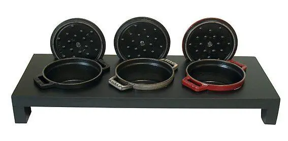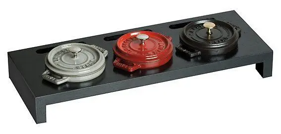 Staub Servierbrett für 3 Mini Cocottes in schwarz (ohne Cocotten). Ideal zum Servieren von 3 Staub Mini Cocottes am Tisch.
