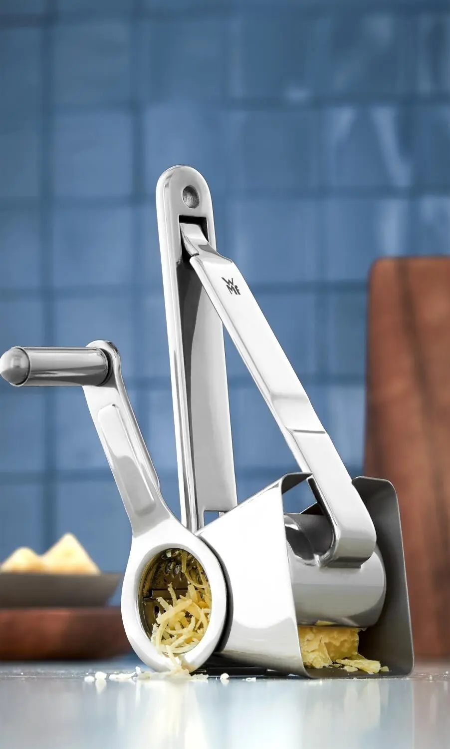 WMF Käsemühle Gourmet. Küchenhelfer aus Edelstahl-Guss weisen sehr gute Gebrauchseigenschaften auf. Sie sind absolut rostfrei, formstabil, beständig gegen Speisesäuren, geruchs- und geschmacksneutral, hygienisch und spülmaschinenfest. Profis schätzen diese Eigenschaften sehr. Gleichzeitig wirkt die hochglanzpolierte Oberfläche der Küchenhelfer edel und trendgerecht.
