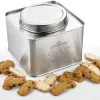 Der Bohnenbehälter aus Edelstahl bietet Platz für 40 g Kaffeebohnen. Ihr frisch gemahlener Kaffee fällt dann in einen Auffangbehälter aus Glas, der auch zum Befüllen des Bohnenbehälters verwendet werden kann. Sie bekommen außerdem einen Reinigungspinsel dazu.